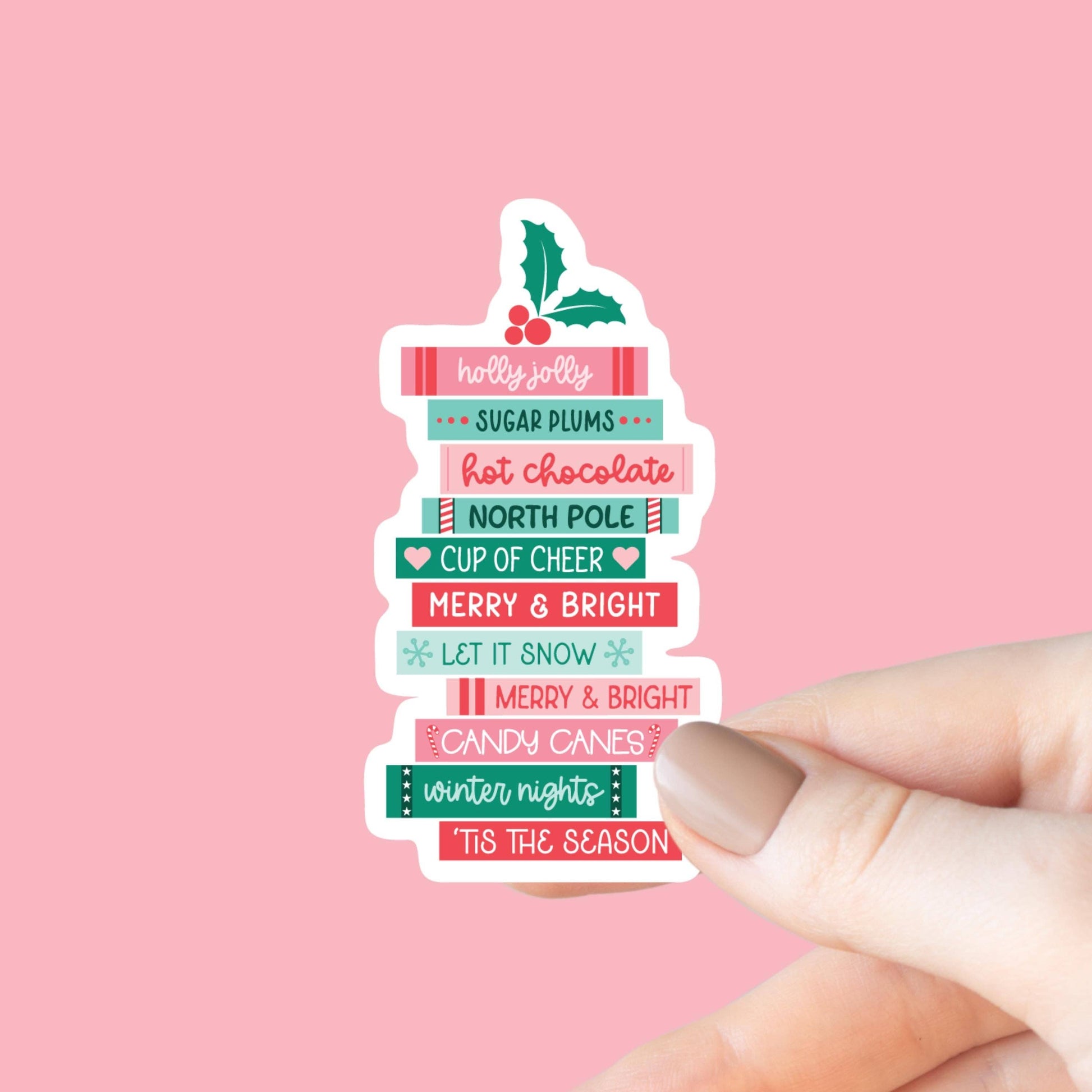 This Christmas Books Book Stack Sticker is perfect for your kindle, water bottle, or laptop! It also makes a great Christmas gift for your favorite reader. I designed the files and the stickers are printed locally here in Bellingham WA by a fellow small business.